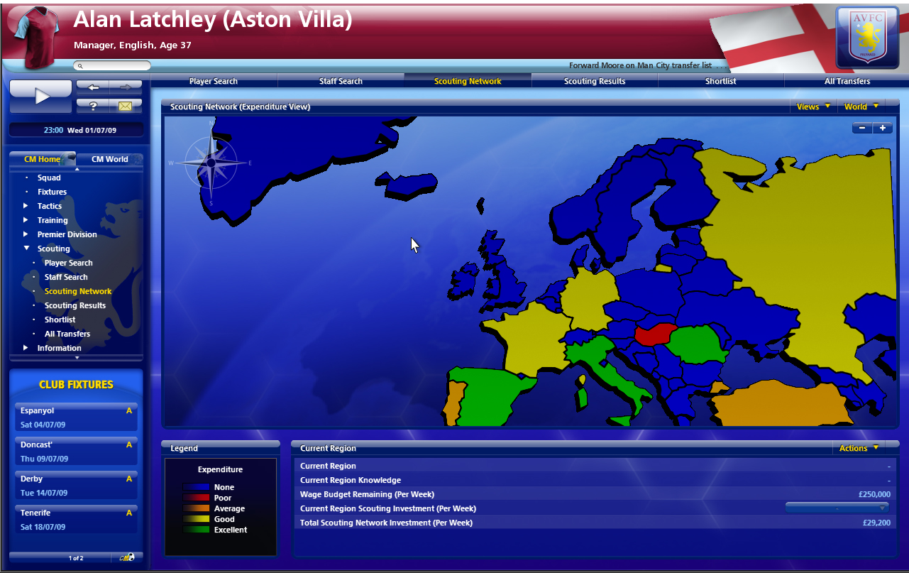 Mais voilà’ c’est l’Italie, “ecco l’Italia”, direbbero i cugini francesi, da noi, si sa, ci sentiamo tutti un po allenatori. Del resto lo sappiamo bene: l’Italia è un Paese di santi, poeti, navigatori… e commissari tecnici, soprattutto se si tratta di Nazionale, Mondiali o Europei che siano. Ma andiamo al nocciolo del discorso: in soccorso del tifoso videogiocatore arriva Championship Manager 2010, l’ ultima fatica di casa Eidos, distribuita da Atari, che, quasi certamente placherà le voglie del più esigente aspirante manager. Si tratta di un gestionale curato in maniera certosina che da due lustri ci permette di misurare le nostre capacità.