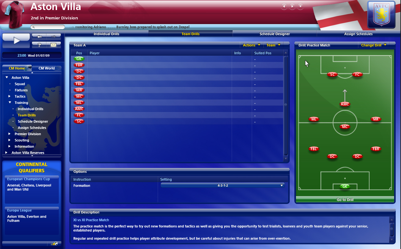 La profondità di Championship Manager permette anche di poter puntare molto sul settore giovanile con somma soddisfazione del provetto allenatore.