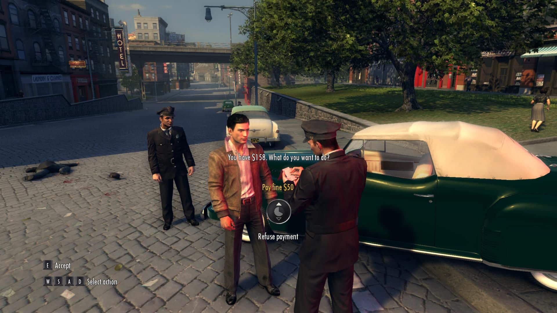 Ovvero, come si pone Mafia II al giocatore? Al primo impatto, il gameplay offre meccaniche tipiche di un action, caratterizzate da coperture dinamiche, ormai divenute uno standard per il genere, e da ritmi di gioco serrati, nel caso di intense sparatorie o fughe, o più lenti e ragionati nel caso di missioni stealth. Ma, analizzando a fondo il titolo 2K, ci rendiamo conto che Mafia II fonde più generi complementari tra loro: se la componente action/free-roaming fa da colonna portante all’intera struttura di gioco, ad essa si affiancano elementi sia di natura racing che picchiaduro. A bordo di un veicolo, la sensazione è davvero quella di guidare un mezzo dell’epoca: ogni vettura è caratterizzata da una cilindrata, un peso ed una tipologia specifica. Il relativo andamento non viene influenzato esclusivamente da tali fattori, ma anche dalle stesse condizioni metereologiche o da quelle fisiche del mezzo: una strada bagnata o innevata ostacola più o meno pesantemente il controllo delle vetture, così come una ruota forata o un motore leggermente danneggiato possono compromettere un’eventuale fuga dalla polizia. Il sistema di combattimento “corpo a corpo”, invece, risulta ben implementato ed immediato, sebbene l’approccio alle schivate si sia rivelato un po’ troppo semplicistico ed automatizzato. Da buon free-roaming qual è, o dovrebbe essere, Mafia II concede anche una certa libertà decisionale, ma solo in circostanze predefinite: può capitare, per esempio, di assistere ad un acceso litigio per strada tra marito e moglie e decidere se porre rimedio alla discussione, eseguendo una determinata azione dettata dal caso, o far finta di nulla e lasciare che sia l’IA a concludere la sequenza scriptata. Tutti elementi, questi, che contribuiscono a rendere viva la città: le voci dei passanti, il rumore assordante del traffico, le urla dei giornalai ambulanti o le sussurrate parole delle persone sedute in un caffè, coinvolgono il giocatore fin nei minimi particolari, grazie anche ad un fedelissima ricostruzione della New York anni ’40 e ’50 ed una colonna sonora assolutamente in linea con gli stili musicali dell’epoca. Gli stessi toni e colori di gioco, inoltre, mutano col progredire della tecnologia, dei gusti e dell’effetto globalizzazione.