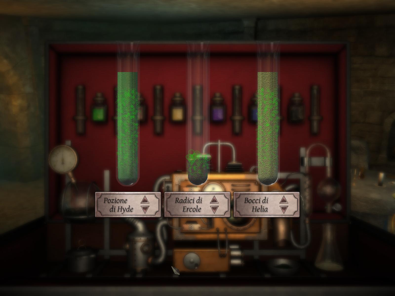 Ti trovi in un’altra stanza dove ci sono degli armadietti e una tavola con degli strani ingranaggi al centro: gli armadietti davanti e a sinistra sono chiusi, quello a destra no. Osserva la tavola centra, osserva gli ingranaggi a destra e prendi i pezzi. Metti i pezzi appena raccolti nella tavola centrale: il tuo scopo è quello di riposizionare i tubi allo stesso modo. Devi ripetere la cosa per tre volte, andando a prendere sempre i pezzi nuovi dall’armadietto appena sbloccato. Quando sblocchi il secondo armadietto, un ingranaggio cadrà in terra sulla sinistra, prova a prenderlo ma è pesante: bevi la posizione e prova a inserirlo nell’ingranaggio in movimento vicino ma Hyde ti dirà che deve attendere il momento giusto, quindi rallenta il tempo, interagisci con gli ingranaggi in movimento (mentre hai ancora in mano l’ingranaggio pesante) e premi il tasto azione quando indicato (per accelerare le cose, premilo ripetutamente).