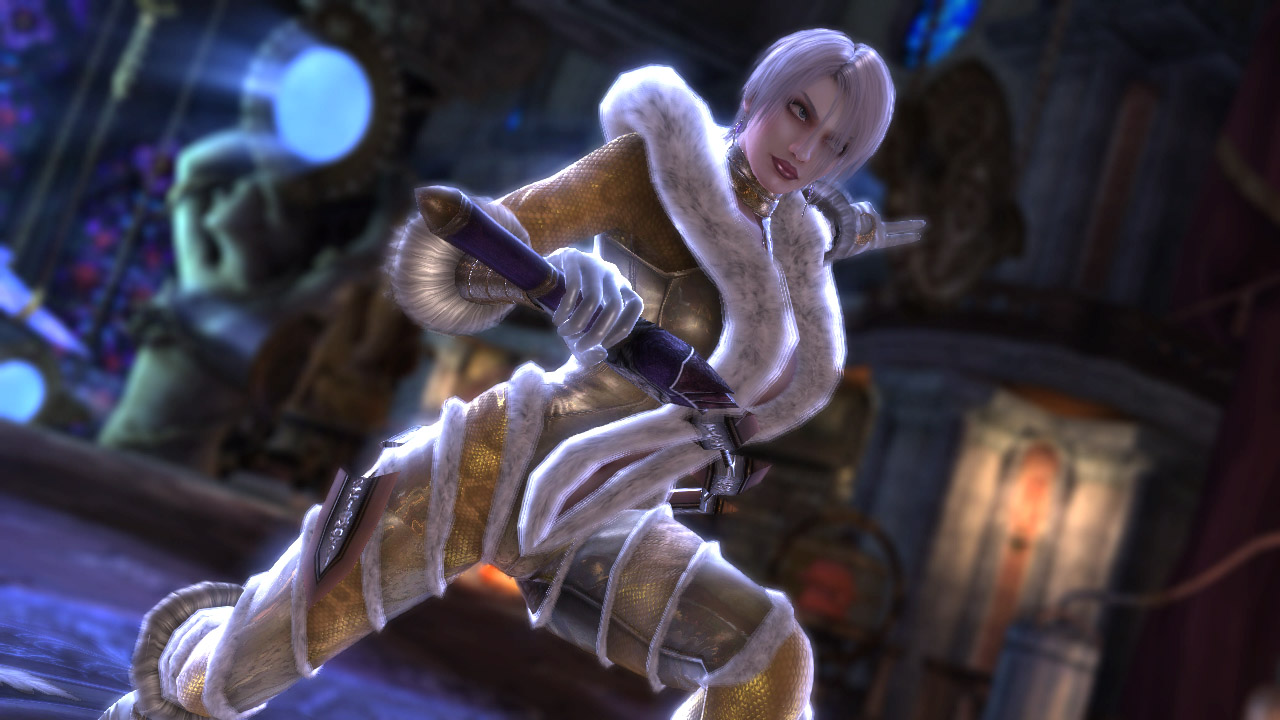 La sigla inaspettatamente diversa dal solito (nessuna presentazione dei personaggi, ma solo uno scontro tra Siegfried e Nightmare) potrebbe fare insorgere qualche preoccupazione nei fan di vecchia data, preoccupazione acuita dal roster inaspettatamente ricco di assenze importanti. Infatti personaggi illustri come Sophitia, Cassandra, Talim, Xianghua e Taki non saranno presenti creando un senso di nostalgia e di “smarrimento” non da poco. In realtà la loro “essenza” continua a vivere nei nuovi personaggi: Pyrrha, figlia di Sopithia, rispecchia molto Cassandra; altri esempi sono dati da Natsu (Taki) e Leixia (figlia di Xianghua). Ogni personaggio assente trova un degno sostituto “tecnico” nel nuovo roster e, per quanto la scelta di accantonare alcuni mostri sacri sia sofferta e dolora, appare vincente: grazie a questa mossa la storia può svilupparsi nella generazione successiva (gli eventi della storia si svolgono infatti ben 17 anni dopo il quarto capitolo) e in più si può dare una rinfrescata alla lista dei personaggi. Volti nuovi ma dal feeling familiare, in altre parole (non) cambiare senza infrangere la tradizionalità del gameplay. Il personaggio bonus, Ezio Auditore da Assassin’s Creed II, appare molto coerente rispetto all’ambientazione e quindi non crea l’effetto fuori contesto dei personaggi di Star Wars (o di altre aggiunte infelici, come Necrid in Soul Calibur II).