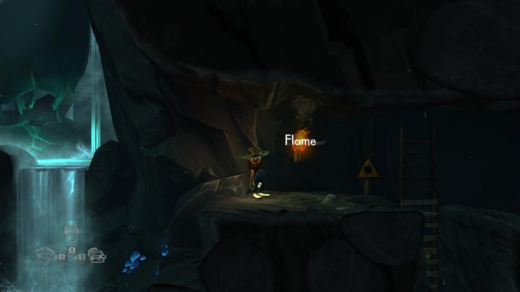 Prendiamo il secchio e risaliamo fino alla pozza d’acqua e riempiamolo, avvicinandoci al minatore ci lancerà un candelotto di dinamite acceso, intercettiamo il tiro con il secchio pieno d’acqua così da avere un candelotto spento. Utilizzando un personaggio, blocchiamo il carrello minerario appena sotto la gru, infine utilizziamo un altro personaggio per tirare la Claw Lever. Ora spingiamo il carrello fino a raggiungere il minatore, torniamo dal minatore e prendiamo un altro candelotto di dinamite, questa volta però usiamolo sulle rocce che si trovano al di sopra della pozza d’acqua. Avremo bisogno di utilizzare tutti e tre i personaggi per creare un contrappeso e consentire di spingere il carrello della miniera nel tunnel a sinistra. Ancora una volta, torniamo dal nostro amico minatore per un candelotto di dinamite e facciamo saltare le rocce sul livello superiore. Entriamo dentro e proseguiamo verso il carrello minerario. Usando il personaggio con la pala, saltiamo nel carrello e spingiamolo nel tunnel con l’altro personaggio. Facciamo attenzione che il nostro personaggio con la pala, passi attraverso il tunnel e cambi la direzione dei binari così da far arrivare il carrello dal minatore. Ora portiamo tutti e tre i personaggi nel percorso in discesa.