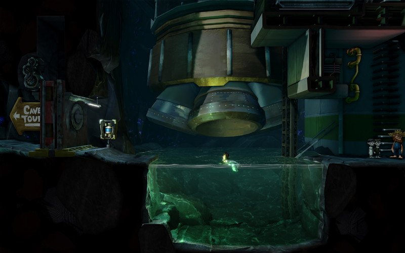 Procediamo ancora a destra e parliamo con il ragazzo del gift shop, poco prima di andarcene ci chiedere di portargli tre oggetti e vi consegnerà la “Novelty-Sized Key” proseguiamo a sinistra per sbloccare una porta. Scendiamo e tiriamo le leve nel seminterrato (si trovano vicino la porta e dalla parte opposta ad essa). Adesso riprendiamo il personaggio con il piede di porco e continuiamo ad andare a sinistra saltando sulle varie piattaforme per raggiungere la zona chiamata OLD WELL, prendiamo la manovella e utilizziamola vicino il pozzo per ottenere un secchio. Torniamo indietro a “OLD WELL” e avanziamo fino alla scatola dei fusibili, utilizziamo il secchio per raggiungere il fusibile. Una volta ottenuto dirigiamoci ai seminterrati dove vi sono i distributori automatici, inseriamo il fusibile ottenuto in precedenza nella scatola vuota per poterli attivare.