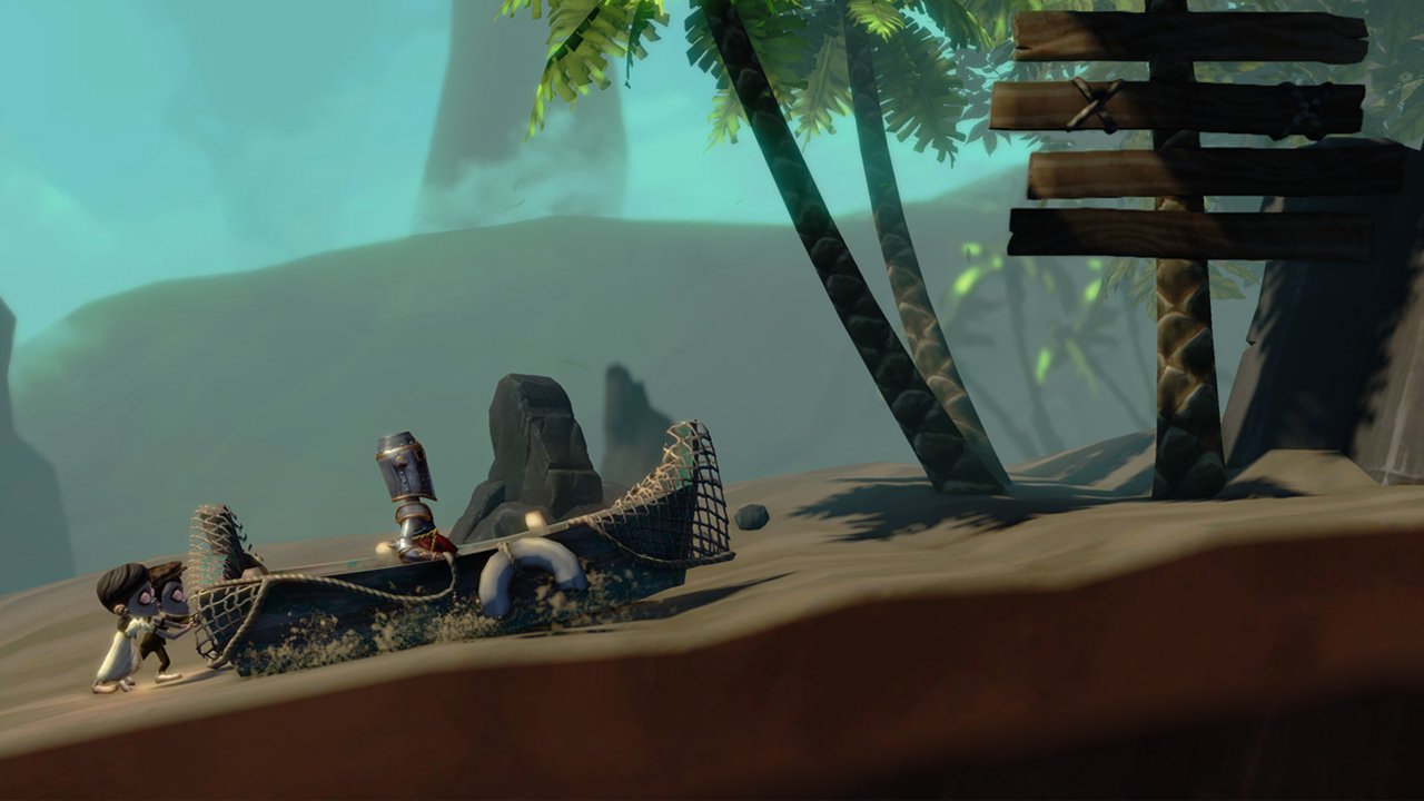 Ora torniamo nel lato est dell’isola e prendiamo la lattina di mais, mettiamola nel barile sotto l’acqua. Ora prendiamo il barile dalla scala e tiriamolo finché non si illumina. Spingiamolo rapidamente indietro rispetto a dove siamo venuti per provocare una reazione a catena di esplosioni che dovrebbero distruggere le rocce e farci ottenere il trofeo/obiettivo Creamd Corn. Torniamo ora alla barca e tiriamo la leva per spingere la barca fino a quando non si ferma sotto il pallone. C’è un’altra valvola d’acqua nelle vicinanze, usiamola e quindi spingiamo la barca verso il mare. Purtroppo, l’Eremita ha occupato uno dei vostri posti, quindi cercate di sbarazzarvi di lui. torniamo al punto dove si trovavano i barili ed afferriamo il femore, poi proseguiamo verso la baracca dell’Eremita e lasciamolo da Spanky. Ora, prendiamo la scatola di cracker nella zona est del mare e troviamo il pappagallo, situato vicino la prima bandiera, e convinciamolo ad atterrare sulla nostra spalla. Ora torniamo alla capanna e lanciamo il femore a Spanky per registrare il suo abbaiare, proseguiamo verso l’Eremita. Con l’Eremita andato,possiamo salire sulla barca ed andarcene.