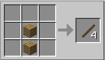 Per produrre gli strumenti abbiamo bisogno dei bastoni (Sticks) che si ottengono semplicemente craftando le assi di legno: ogni asse produce quattro bastoni.
