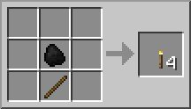 Possiamo craftare quattro torce mettendo un pezzo di carbone in cima ad un bastone; le torce hanno durata illimitata.