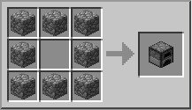 Raccogliamo un buon numero di pietre (cobblestone); ce ne servono almeno tredici inizialmente, tre per il piccone, due per la spada e otto per la fornace. Possiamo iniziare a craftare il piccone di pietra, che ci servirà per recuperare il carbone (se proviamo a scavare il carbone a mani nude o con il piccone di legno non raccoglieremo niente). La ricetta è identica al piccone di legno, basta mantenere i bastoni e sostituire le assi di legno con le pietre (vedi figura).