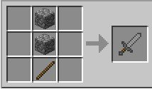 Prodotto il piccone di pietra, dedichiamoci alla spada (Sword). Ha un manico più corto rispetto agli altri strumenti (un solo bastone) e una lama che può essere di vari materiali; a noi serve di pietra, per cui seguiamo la ricetta e procuriamoci una buona spada di pietra che ci servirà successivamente.