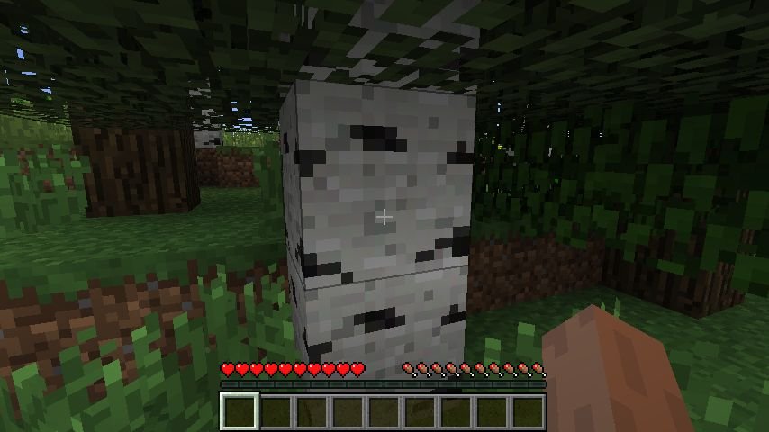 Se abbiamo abbastanza legna possiamo iniziare a trovare un riparo: tra poco scenderà la notte e zombie, ragni, creepers e endermen verranno a farci la festa. Usiamo l’ascia sul Crafting Table e mettiamolo nell’inventario, e leviamo le tende.