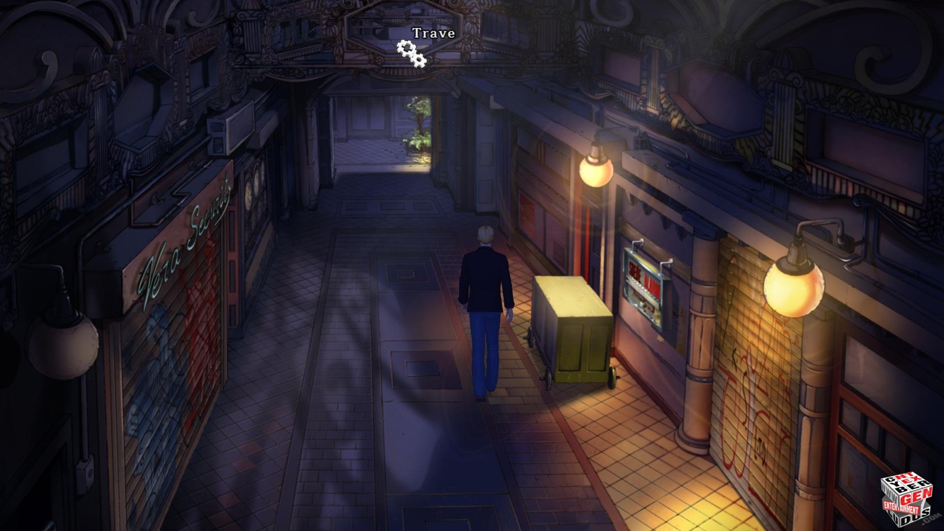 Quando avrai esaurito le opzioni di dialogo, torna alla galleria per parlare con Laine, ma non lo troverai. Allora, parla col cameriere per sapere che dovrebbe essere all’appartamento di Henry a consolare la vedova. Per curiosità, mostragli anche la foto con Annette. Esci dall’area e dirigiti all’appartamento: interagisci col citofono e digli tutto ciò che ti serve per salire. Completa il dialogo con Laine e Bijou, curiosando di qua e di la, ed esci dall’appartamento per tornare automaticamente alla Vera Security. Guardati attorno: la serranda dell’agenzia è abbassata e i comandi sono regolati dalla scatola elettrica in alto.