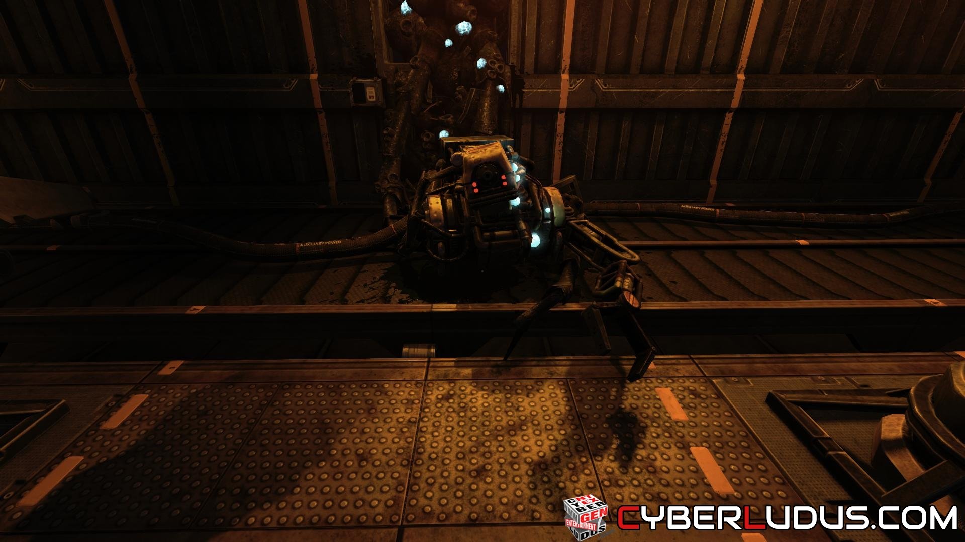 Ancora una volta andrà storto qualcosa e Simon sarà costretto a fermarsi durante la discesa. Apri il portello nel pavimento e scendi con le scale. Dopo la caduta, aggrappati ancora alle scale ed entra nel corridoio: sei al livello più basso, quello delle spedizioni. Dopo qualche passo verrai assalito da un Proxy e partirà una sequenza scriptata. Riassunto il controllo di Simon, fai un giro di esplorazione e poi procedi verso la porta attiva. Arriverai in una zona molto buia dove ci sono un paio di stanze, ma tutte inutili. L’unica importante è quella dove c’è la spia verde, piuttosto sorvegliata da un mostro: fai attenzione ad oltrepassare la soglia (e quella successiva) chiudendo sempre la porta alle tue spalle, in modo da guadagnare qualche secondo nel caso in cui il mostro ti segua. Arrivato all’interno della stanza, apri subito il portellone per il condotto di areazione. Questa area è molto simile alla precedente: mantieni un basso profilo e raggiungi il corridoio con la spia verde, percorso spesso dal mostro. Di nuovo, via per un altro condotto. Ancora, segui la spia verde facendo attenzione al mostro e, mentre prosegui, controlla la situazione attorno a te: durante il corridoio potrai notare a sinistra una porta chiusa con spia rossa. Prosegui dritto per arrivare in una nuova stanza (senza uscita) e controlla la parete in fondo a sinistra: c’è un portellone che, una volta rimosso, rivela il pannello energetico. Per dare energia alla sala devi tirare più volte la leva orizzontale fino a che il livello di corrente non raggiunge le spie verdi. Personalmente ho trovato qualche difficoltà nell’utilizzare frontalmente la leva; mi sono spostato di lato e ho cominciato a muovere il mouse a sinistra e a destra. Ristabilita l’energia, torna indietro e prosegui per la stanza prima inaccessibile, buttandoti in acqua. Risali utilizzando la scala lì vicino, e poi continua a seguire il percorso di scale fino a quando sarai costretto a scendere. Voltati a lato e guarda in basso per notare una piattaforma con una grata leggermente spostata: saltaci giù e prosegui per i condotti. Raggiungi l’occhio ed usalo per ripristinare la salute, poi abbassa la leva e comincia a correre di fronte.