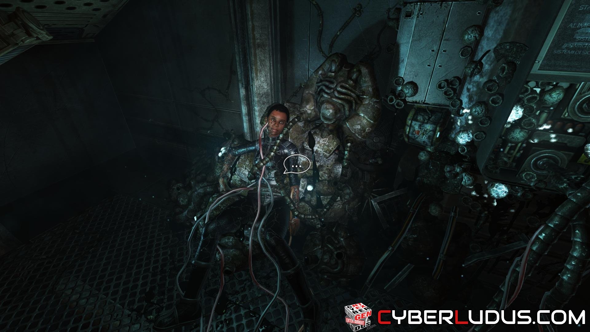 Una volta guadagnata la stanza iniziale, inserisci l’Omnitool nel macchinario apposito. Interagendo con il pannello di controllo puoi vedere un filmato introduttivo che ti aggiorna sulle potenzialità dello strumento (in grado di aprire tutte le porte). Tuttavia, il tuo Omnitool è ancora incompleto e ti mancano entrambi i chip, strumentale e corticale. Apri la cassetta degli strumenti (che si trova proprio sulla stessa piattaforma di controllo, a sinistra), prendi una delle card di livello 3 e mettila nell’Omnitool, poi rientra nel pannello e aggiorna il chip. Esci dalla stanza e stavolta vai a sinistra, dove prima era tutto chiuso. Scendi le scale verso l’Observation Tower e prosegui dritto. Apri il portellone con l’Omnitool e fermati al centro del nuovo corridoio per interagire con l’interfono ed ottenere un flashback. Terminato il dialogo, continua per la stanza successiva, dove puoi interagire con uno strano occhio/foro ricoperto di tessuti.