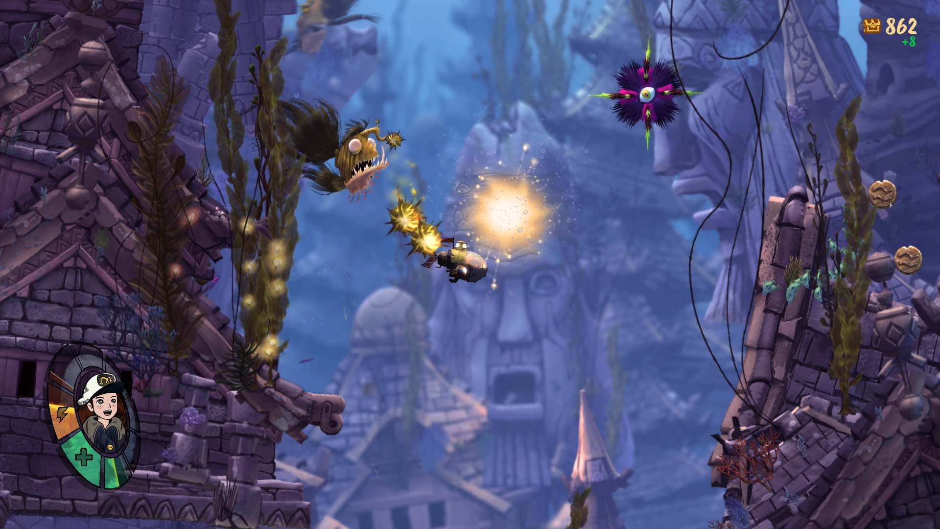 Dopo questa breve introduzione, Song of the Deep, ci immerge immediatamente nell’oceano, alla guida del sottomarino guidato da Merryn.