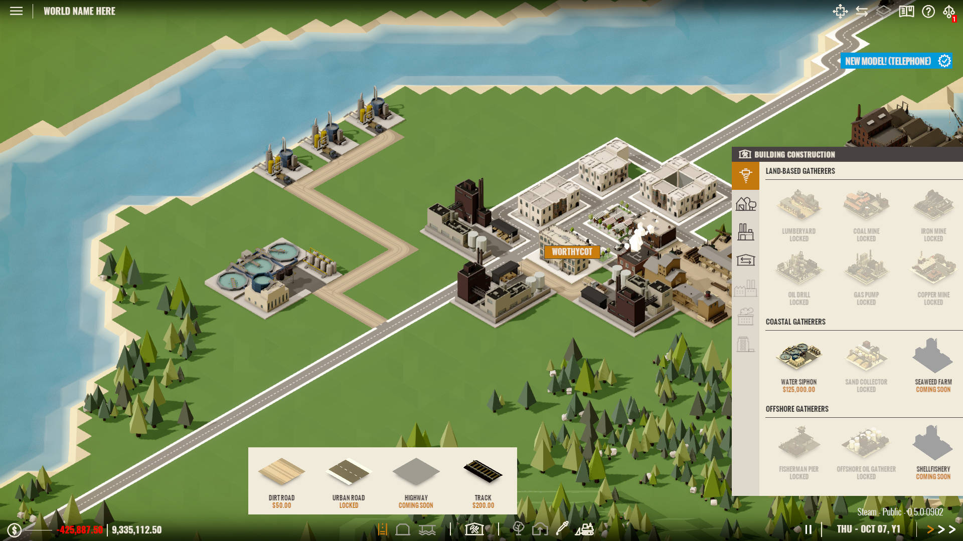 E’ corretto aggiungere che esistono al momento altre 2 modalità di gioco: Freeplay che permette di giocare avendo subito a disposizione tutto l’albero delle tecnologie e Custom Game dove è possibile creare un mondo personalizzato tramite numerosi parametri (quantità di laghi, fiumi, città, etc.). Secondo la roadmap di sviluppo, Rise of Industry vanterà in futuro anche una modalità Storia.
