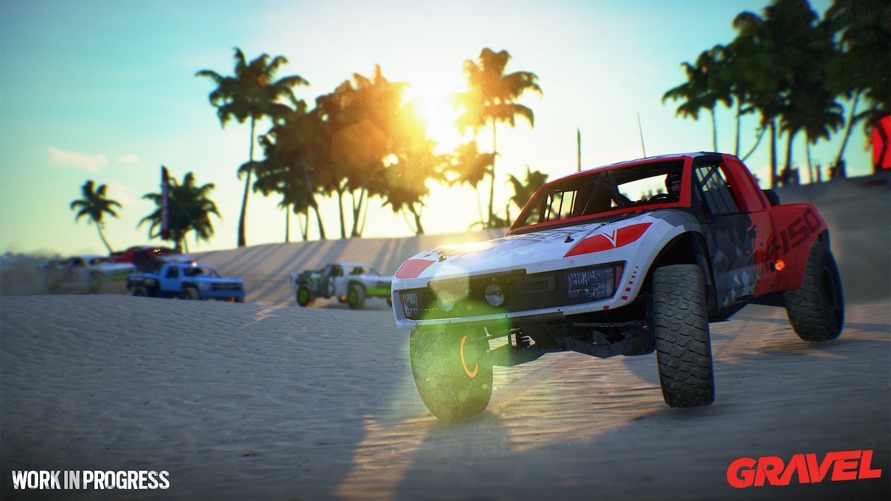 In un’epoca dove regna imperante la simulazione, Gravel tenta di proporre qualcosa di diverso ma al tempo stesso classico. Uno stile di gioco arcade, che già tramite il tutorial getta il giocatore nella mischia, senza troppi fronzoli. Non stiamo parlando della stessa tipologia di guida già offerta da titoli blasonati come Burnout o i vecchi Need For Speed: Gravel si presenta con un volto diverso. Non dovrete perdere ore preziose del vostro tempo per apprendere ogni singola meccanica ma non aspettatevi di poter immediatamente sfrecciare con semplicità , magari attivando un improbabilissimo NOS. Feature non di poco conto è il rewind del tempo, il quale vi consentirà di tornare indietro di qualche istante per correggere la traiettoria ed evitare di spalmarvi contro la prima palma come marmellata sul pane.