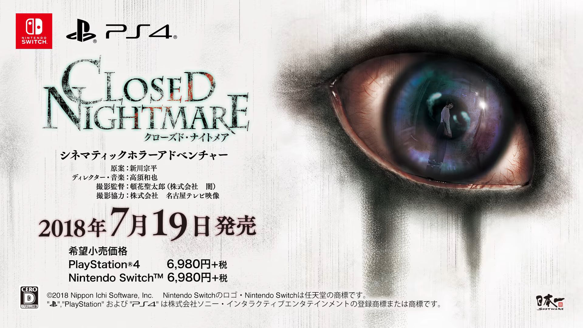 Oggi Nippon Ichi Software ha annunciato che la sua cinematic horror adventure Closed Nightmare per PS4 e Nintendo Switch uscirà in Giappone il 19 luglio.