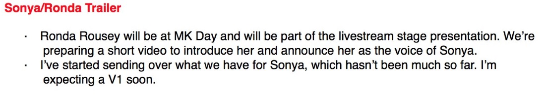 Mortal Kombat 11 diventa sempre più interessante. Grazie al solito leak inspiegabile, pare che sia stata pubblicata una email ufficiale dove si parla esplicitamente della campionessa americana di WWE Ronda Rousey come la prossima interprete della voce di Sonya Blade nel videogame in uscita il prossimo 23 aprile Mortal Kombat 11.
