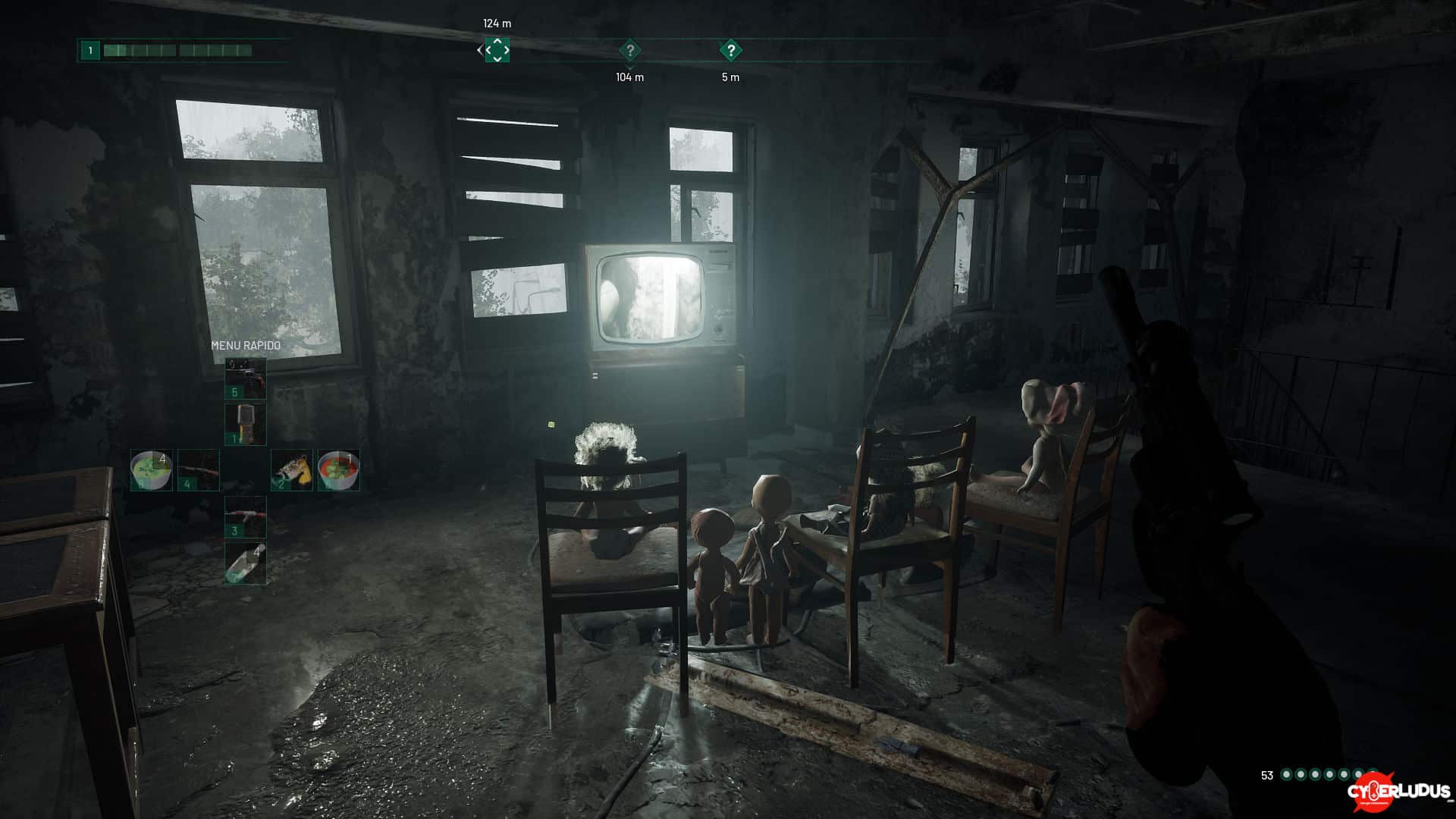 Durante le esplorazioni nelle dettagliatissime e stupende mappe di Chernobylite, uno degli scopi principali è la raccolta di risorse. Queste si dividono in una manciata di categorie come Erba, Funghi, Cibo, Elementi infiammabili, Parti meccaniche, etc. oltre che i già menzionati cristalli di Chernobylite (rari) e armamentario di varia natura. Le risorse sono utilizzate per costruire sia nella base, ne abbiamo già parlato, sia durante le esplorazioni stesse, dato che è possibile creare anche nel gameplay un generoso sottoinsieme di elementi. Questi spaziano da piccoli banchi di lavoro, utili ad esempio per produrre decotti curativi, a macchinari come riduttori di radiazioni che in generale modificano il livello di pericolosità delle zone stesse. L’accesso alle risorse più pregiate nei vari livelli è spesso bloccato da porte (apribili tramite costosi chiavistelli) oppure blocchi del nefasto minerale verde che richiedono candelotti di dinamite speciali. Questo è praticamente tutto, invero non c’è una grande varietà di cose da fare e dobbiamo ammettere che, a lungo andare, l’incedere sempre nelle stesse zone raccogliendo sempre la stessa roba diventa abbastanza tedioso. Al momento di scrivere questa recensione poi dobbiamo notare che il bilanciamento di questa feature ha bisogno di una ritoccata dato che, appena passate le prime giornate, dove le risorse scarseggiano, facendo bene il proprio dovere queste saranno così eccessive che ci si potranno riempire interi armadi.