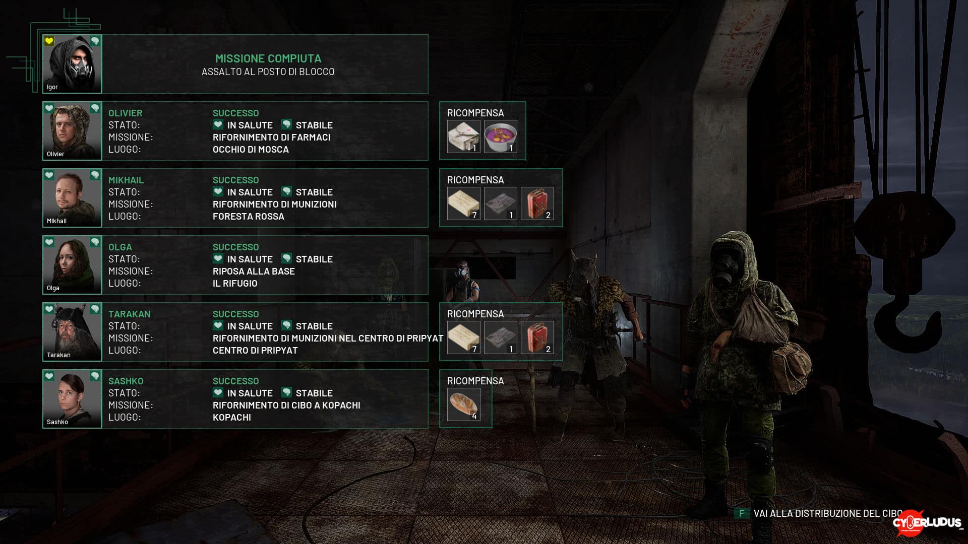 All’inizio di ogni giornata viene sempre resa disponibile una missione “storia” tramite un dialogo (inevitabile) con uno dei membri della squadra, insieme ad altre missioni di raccolta risorse sulle varie zone esplorabili e tutte possono essere liberamente assegnate ai membri della squadra. Ogni personaggio mostrerà su di esso una percentuale di riuscita per la missione selezionata – ovviamente meglio mantenere le probabilità più alte possibili. Una eventuale sconfitta della squadra causerà la riduzione di energia e/o salute mentale. Per gli NPC questi possono deteriorare durante le missioni giornaliere e, casomai dovessero scendere sotto il livello giallo, si ritroverebbero incapacitati per qualche tempo, inidonei a partecipare ad altri incarichi. La perdita totale di un parametro da parte del giocatore causa invece, inutile dirlo, la morte, evento però che dopo qualche giorno di gioco diventa un’occasione a dir poco unica, che vedremo tra poco.