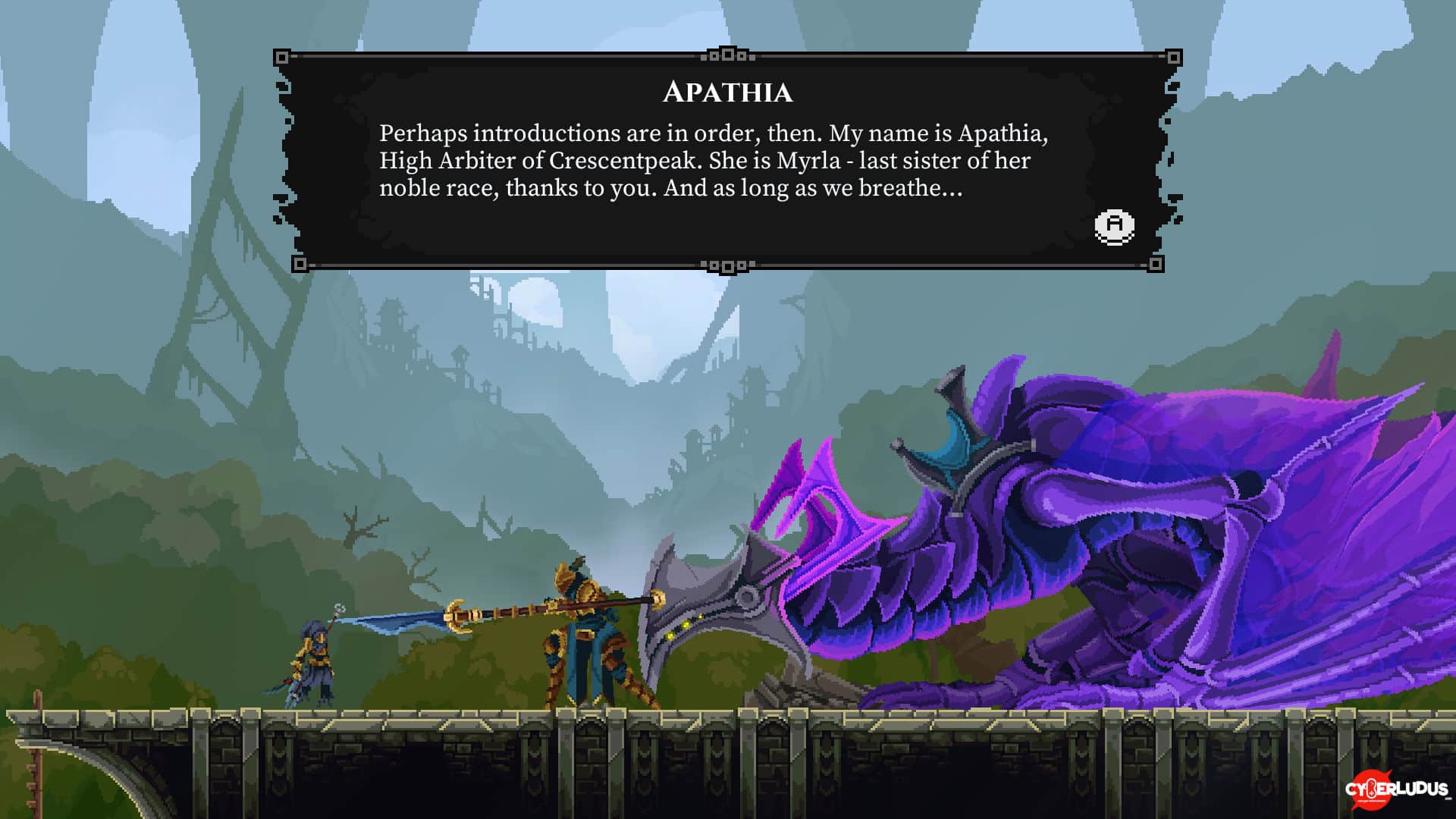 La storia qui è evidentemente di contorno, quasi insignificante: il protagonista viene evocato dalla dea Juxtia per risolvere la solita crisi. Come suggerisce il titolo del gioco, il dominio della divinità, un tempo palpitante di vita, è stato contaminato dal male e il giocatore è colui destinato a sistemare le cose. Questo viaggio porterà il nostro improvvisato eroe attraverso 15 diversi biomi, affrontando 14 diversi boss: in tutto si tratta di un titolo che può essere completato da circa 8 ad oltre 15 ore, a seconda dell’abilità dimostrata nello sgominare gli avversari. Gli sporadici NPC con i quali interagire svolgono la funzione di segnali stradali che ripetono una unica battuta, talvolta fornendo un misero contesto o indizi su come proseguire. Sicuramente si poteva fare qualcosa di più anche se alla fine può andare bene anche così, perchè a pensarci, anche in questo, è un emulo di FromSoftware.