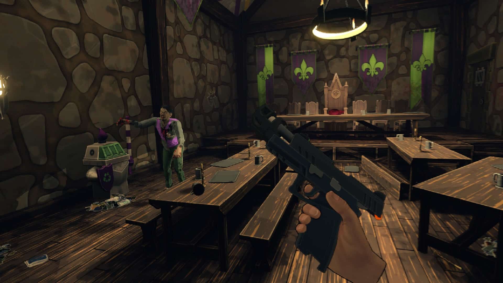 Il combattimento con le armi da fuoco è principalmente un semplice “punta e spara”. Tuttavia, consente comunque un coinvolgimento extra del giocatore con il ricaricamento fisico delle armi. Per l’arma principale (che ha munizioni infinite), premi verso il basso il joystick per svuotare un caricatore. Poi, uno nuovo appare magicamente sotto l’arma e basta inserirlo sopra per ricaricare. È più o meno lo stesso per l’arma secondaria (una doppietta all’inizio). La differenza è che è appoggiata al tuo fianco finché non la sollevi tenendo premuto il grilletto L e alzi il braccio per puntare.