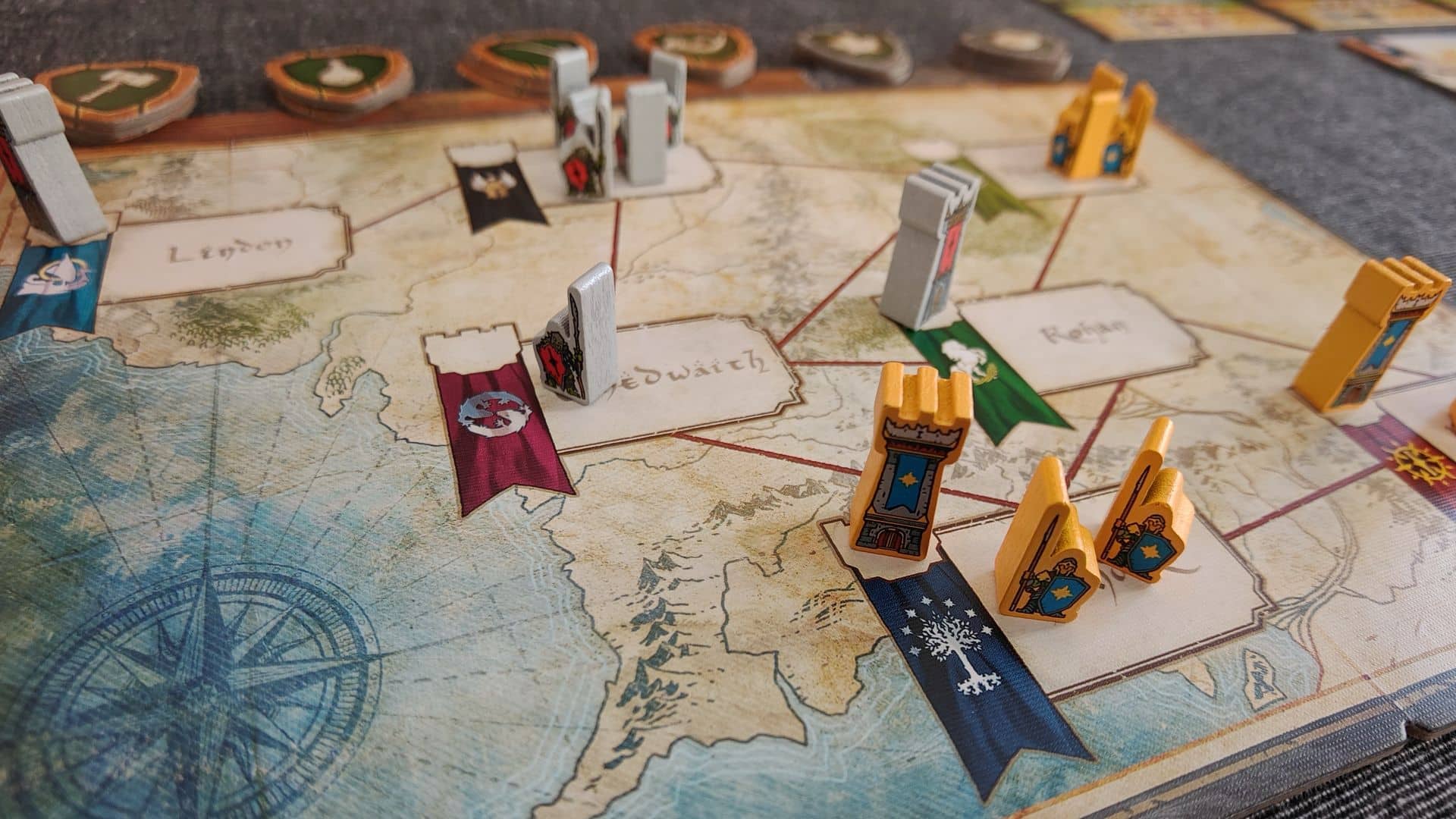 - Pedine Fortezza per entrambe le fazioni (poste dalle tessere Punto di Interesse, permanenti su regione).