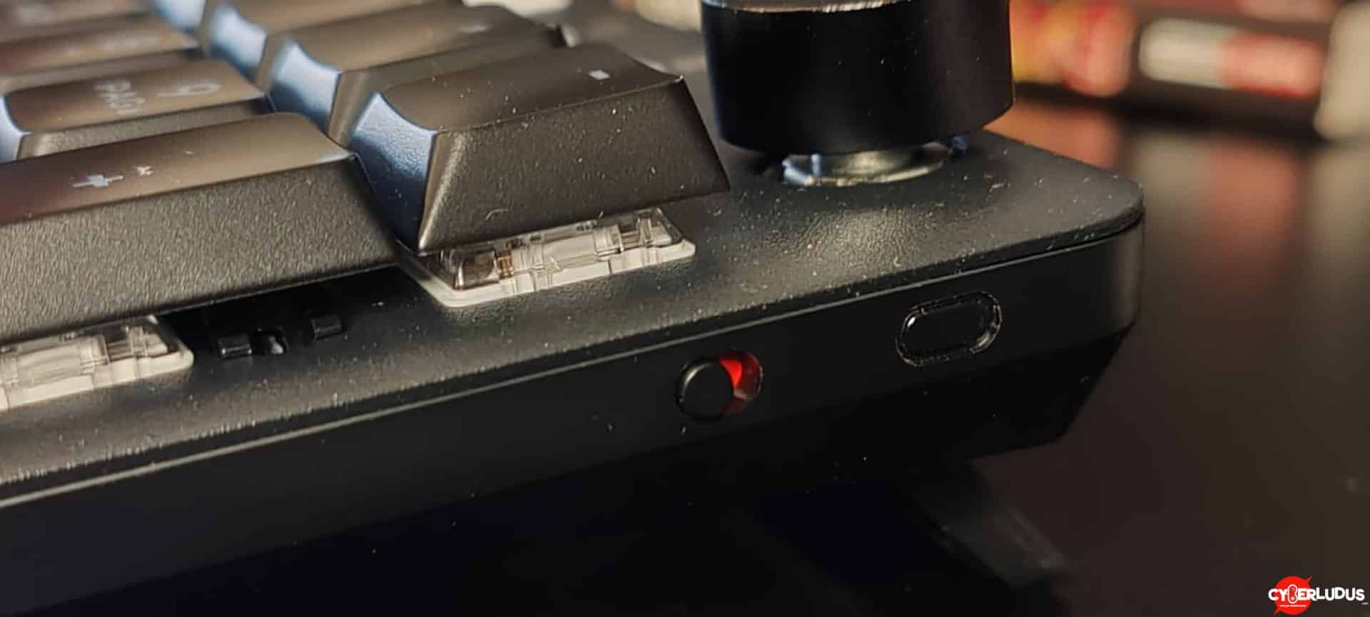Il setup è a prova di boomer ( no, non ne faccio parte, non ci provate eh..ndr): inserisci il dongle, sposti l’interruttore laterale su ON e si parte. La connessione wireless è stabile, senza lag percepibile anche in titoli frenetici. La piastra metallica superiore aggiunge rigidità e una piacevole sensazione di solidità; piedini regolabili e gommini tengono la tastiera ben ferma sulla scrivania.